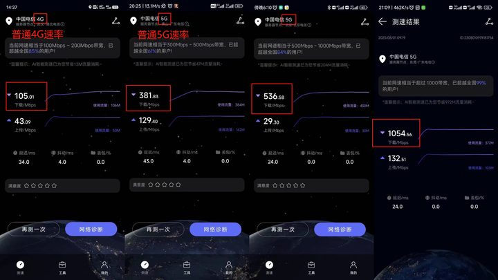 网速分为普通4G、普通5G、5G黄金速率、5G白金速率等几个常见配置,网速逐渐递增